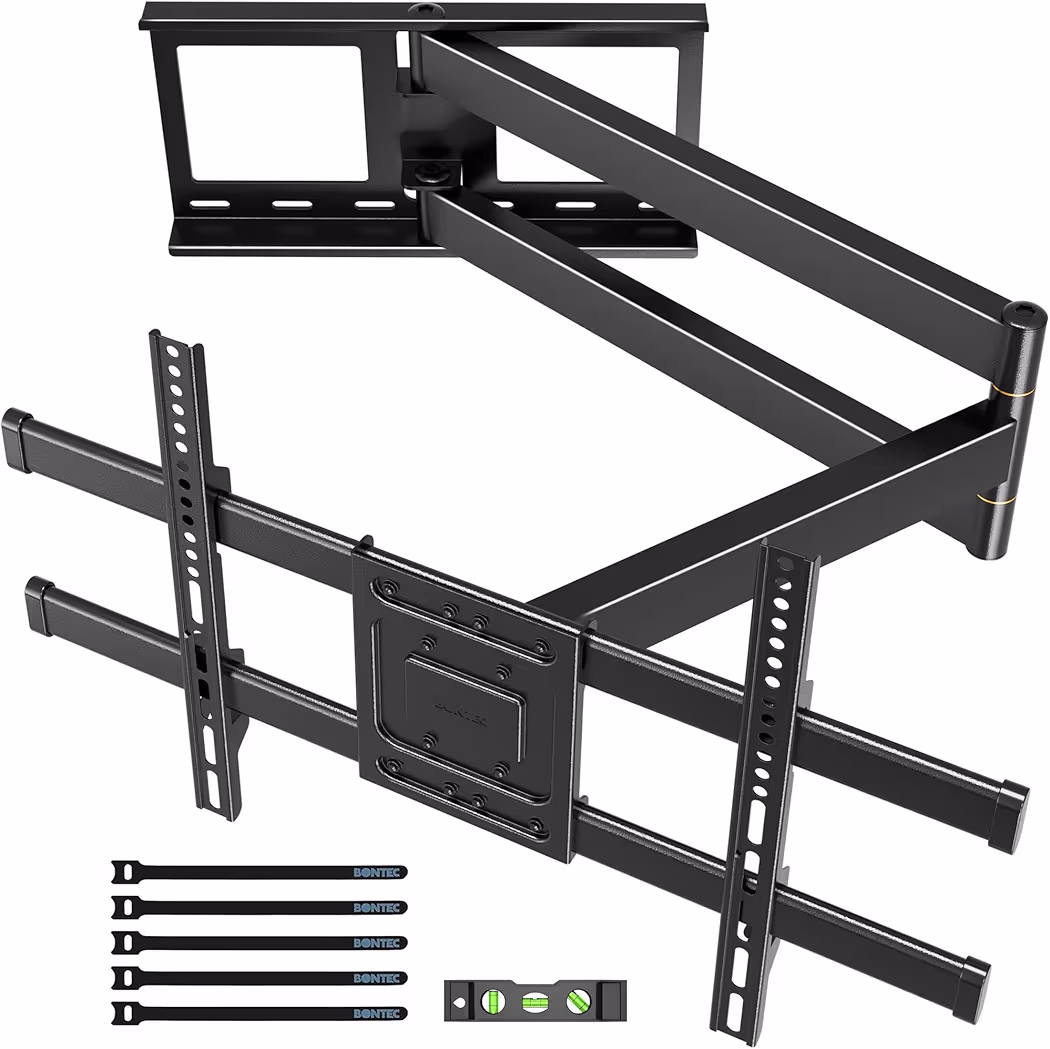 The BONTEC Corner TV Wall Mount is a game-changer for challenging room layouts. Designed specifically for corner installations, its massive 40.9-inch extension arm allows you to position a 75-inch screen perfectly centered, even in wide-angle corners. This dual-arm bracket is compatible with VESA patterns up to 600x400mm and fits a wide range of TVs from 32 to 75 inches. The engineering focuses on stability; even at full extension, the heavy-duty steel frame remains rigid. With +5°/-15° tilt to reduce glare and a 180° swivel for multi-angle viewing, this mount ensures everyone in the room has the best seat in the house. Post-installation leveling adjustments (+/-3°) guarantee your TV is perfectly straight, even if the wall mounting wasn’t flawless.
